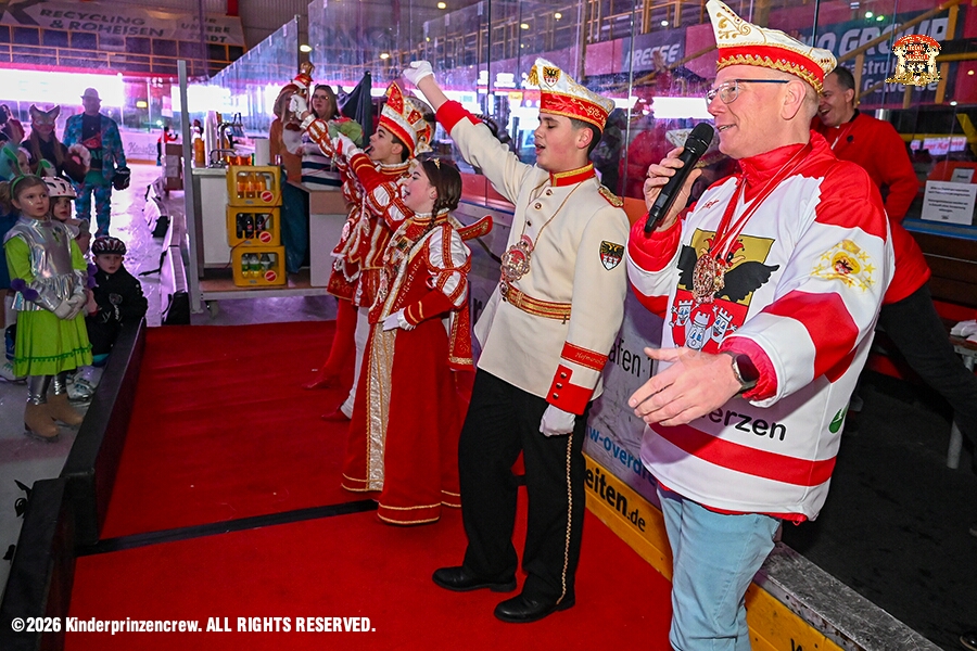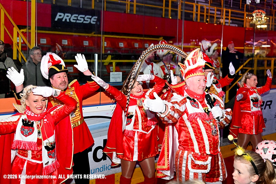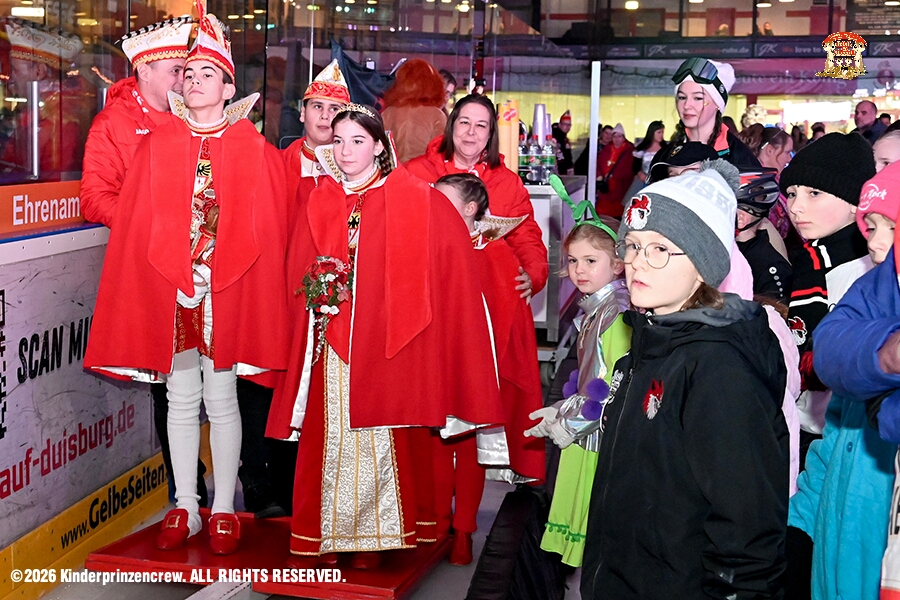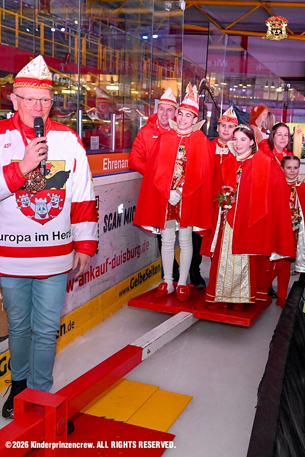Am späten Freitagnachmittag hieß es zum 4. Mal „Karneval on Ice“ . Nach der Premiere 2023 ist diese Veranstaltung weiterhin beliebt. Das (Spaß)Eishockeyspiel der Teams Karneval vs. Stadt Duisburg endete 10:10. Nach diesem Besuch waren noch bei der Ehrengarde, diese hat den „Großen Orden“ an Joachim Loosen verliehen.