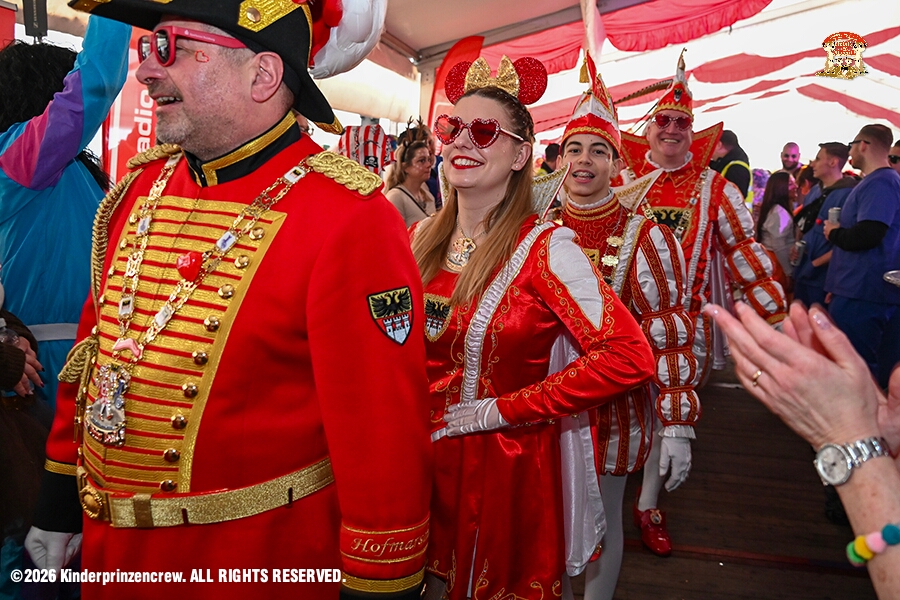 116 Weiberfastnachts Tour, 11. Februar - Schon um 9 Uhr begann dieser ereignisreicher Tag für uns mit der Karnevalsfeier in der GGS Habichtstraße. Im HDK Festzelt wurden wir danach fanatisch gefeiert. Weiter ging es dann zu Hargreaves und ins LANUV zur der Firmenfeiern. Zwischendurch seine Seniorenfeier der AWO Karl-Jarres-Straße. Im Ratskeller feiern die Nordvereine Altweiber. In Folge fahren wir nach Laar, einmal zum Familienkarneval der KG Rot-Gold und die KFD feier im St. Ewald. Der vorletzte Auftritt dann die Altweibersitzung bei der Ehrengarde bevor es zum erneuten Heimspiel zur Altweiber-Party in den Heimathafen geht.