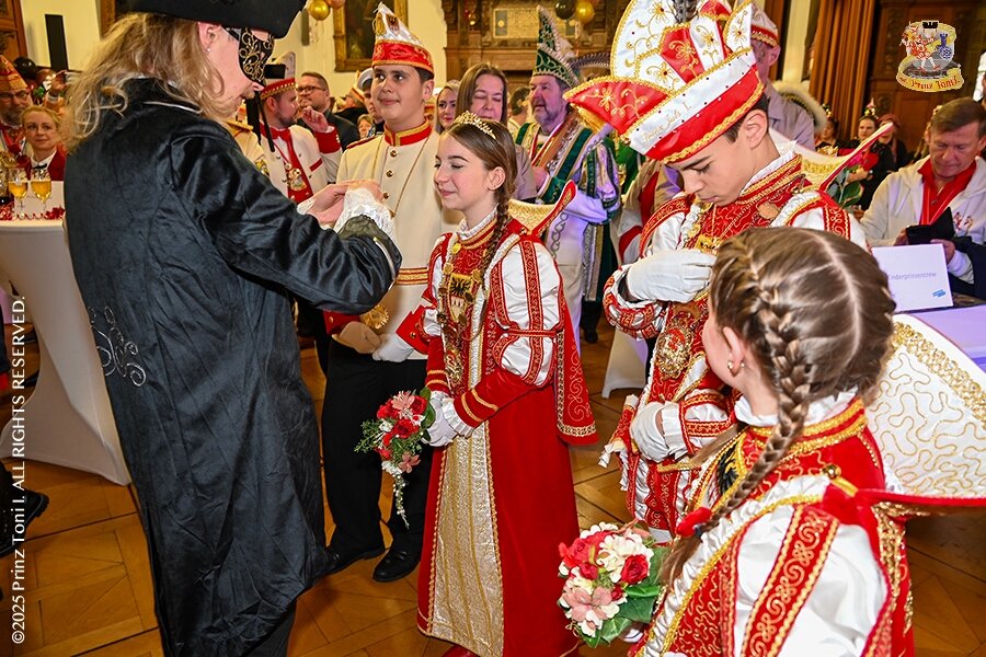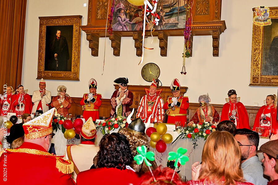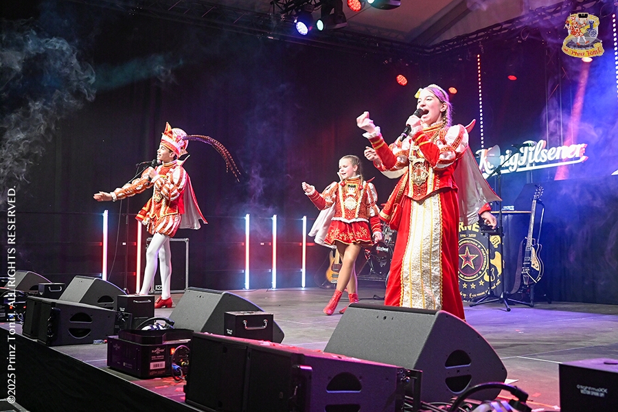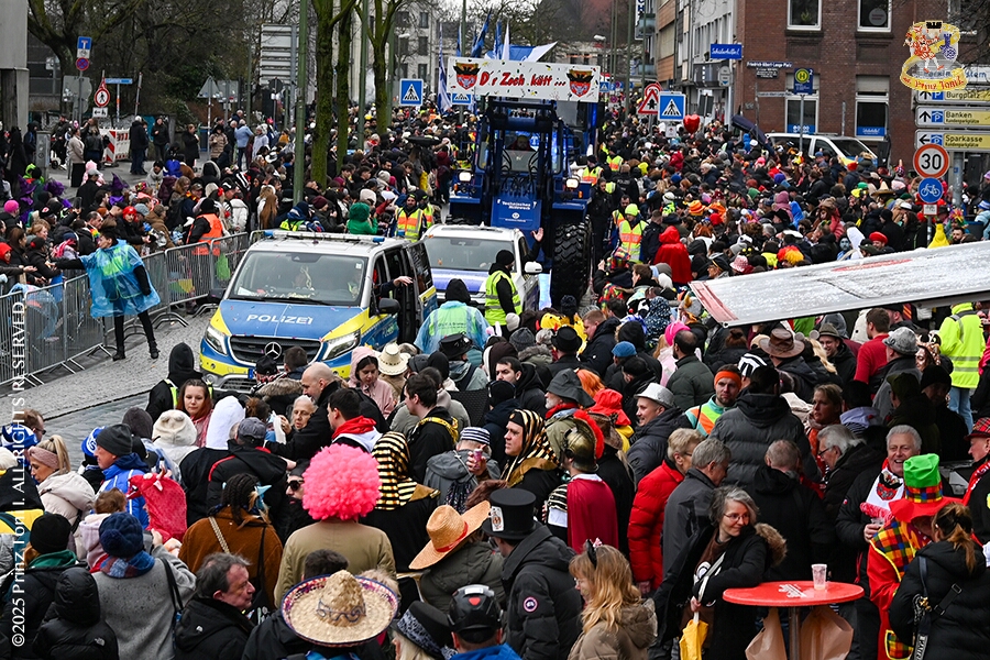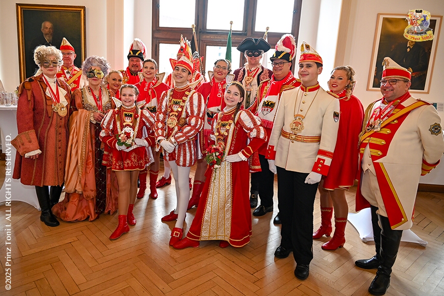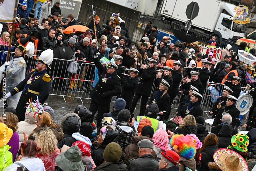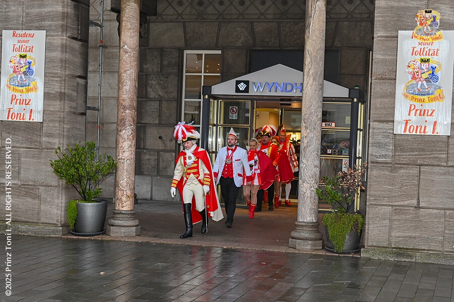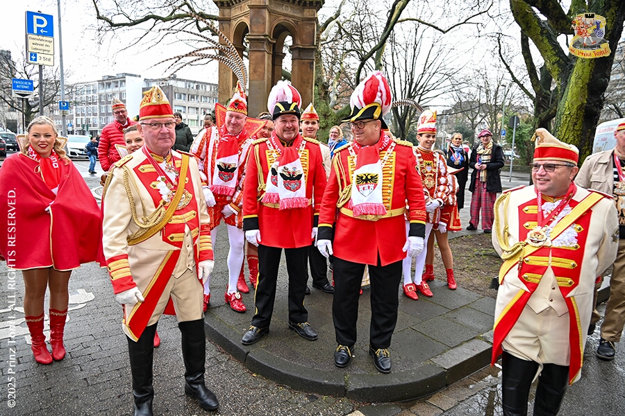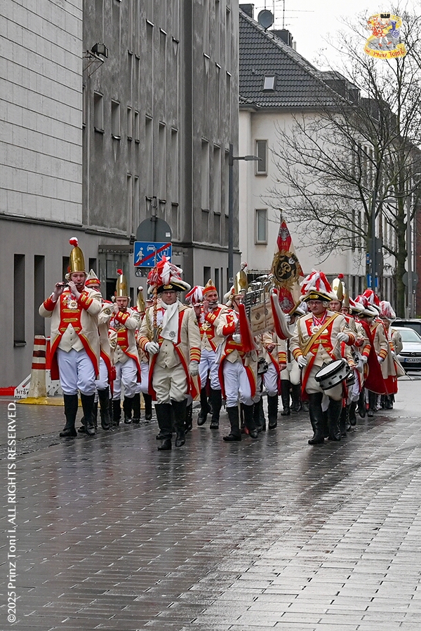 25 Rosenmontag 2026 - Es war eigentlich ein toller Tag, wenn nur das Wetter mitgespielt hätte. Beim Wecken von Prinz Toni I. vor dem WYNDHAM Hotel Duisburger Hof war es schon recht ungemütlich. Danach dann ein paar warme Stunden in unserem Rat, beim Prinzenwecken mit OB Sören Link. Pünktlich zum Start des Rosenmontagszugs geht es los mit dem Regen, bis auf kurze Momente hielt er an bis zum Ende des Zuges. Nachdem sich Alle im König Pilsener Festzelt auf gewärmt hatten, kamen auf der Bühne die Verabschiedung von uns, der Kinderprinzencrew 2026, und Prinz Toni I.