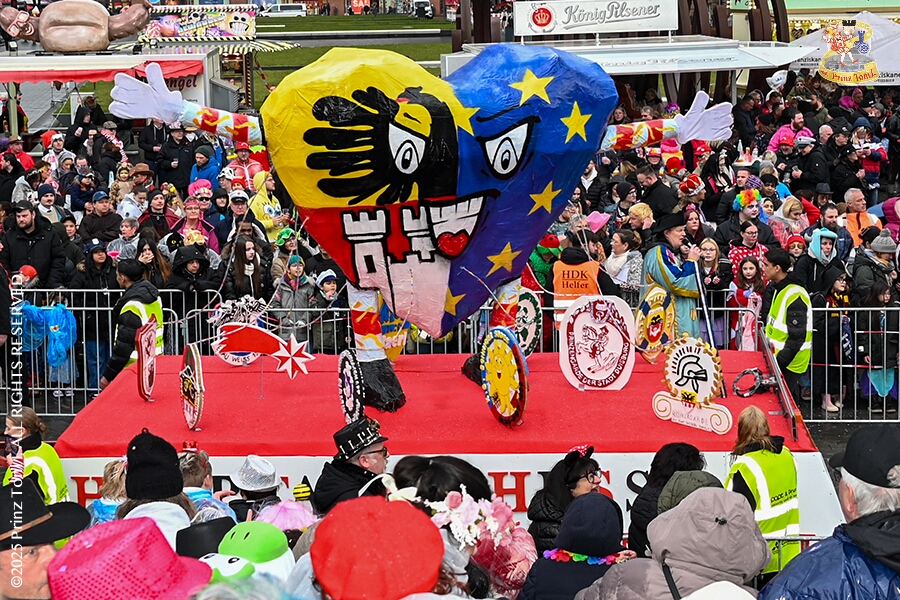 43 Rosenmontag 2026 - Es war eigentlich ein toller Tag, wenn nur das Wetter mitgespielt hätte. Beim Wecken von Prinz Toni I. vor dem WYNDHAM Hotel Duisburger Hof war es schon recht ungemütlich. Danach dann ein paar warme Stunden in unserem Rat, beim Prinzenwecken mit OB Sören Link. Pünktlich zum Start des Rosenmontagszugs geht es los mit dem Regen, bis auf kurze Momente hielt er an bis zum Ende des Zuges. Nachdem sich Alle im König Pilsener Festzelt auf gewärmt hatten, kamen auf der Bühne die Verabschiedung von uns, der Kinderprinzencrew 2026, und Prinz Toni I.