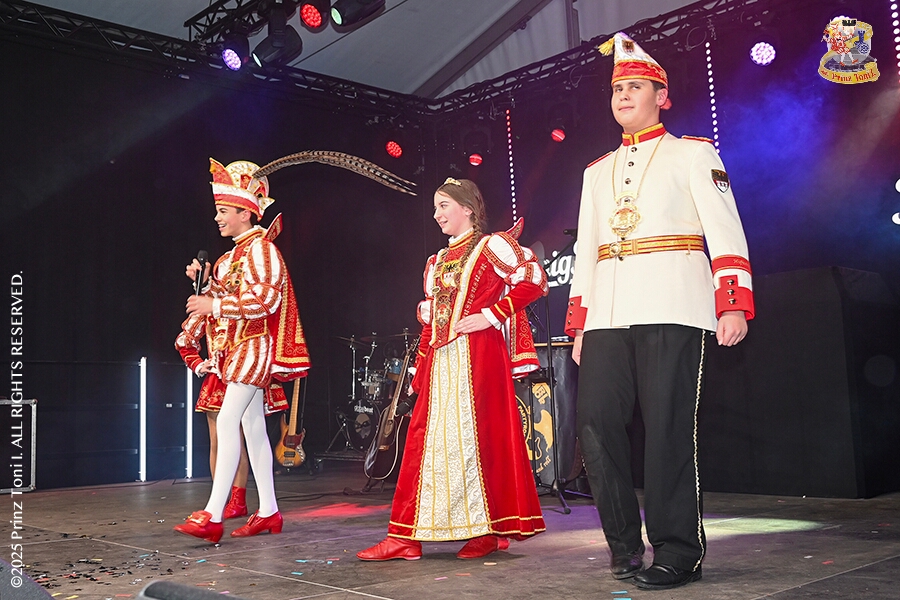 Es war eigentlich ein toller Tag, wenn nur das Wetter mitgespielt hätte. Beim Wecken von Prinz Toni I. vor dem WYNDHAM Hotel Duisburger Hof war es schon recht ungemütlich. Danach dann ein paar warme Stunden in unserem Rat, beim Prinzenwecken mit OB Sören Link. Pünktlich zum Start des Rosenmontagszugs geht es los mit dem Regen, bis auf kurze Momente hielt er an bis zum Ende des Zuges. Nachdem sich Alle im König Pilsener Festzelt auf gewärmt hatten, kamen auf der Bühne die Verabschiedung von uns, der Kinderprinzencrew 2026, und Prinz Toni I.