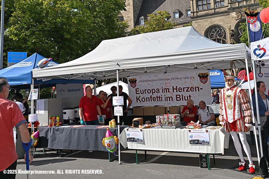 15 Der 6. September - Zwei Termine hatten wir an diesem sommerlichen Samstag. Der Erste war auf dem Burgplatz. Vor dem Rathaus fand der „Tag der Demokratie“ statt. Eine Veranstaltung der Stadt Duisburg, dem HDK unter Mitwirkung angeschlossener Vereinen und diversen Organisationen aus der Stadt. Danach ging es zur Platzanlage des TUS Viktoria 06 in Buchholz zum Benefiz-Spiel gegen die Traditionsmannschaft von Schalke 04.