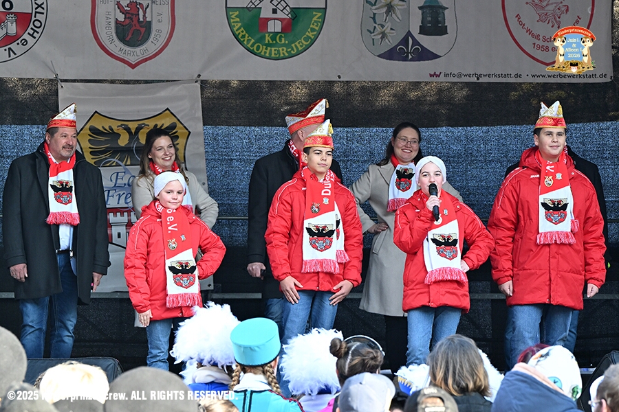 03 Hopped SonnigSued 2025-11-07 06  Langer Samstag, der 8. November  - Am Samstagmorgen stand in der Abteikirche der karnevalistische Gottesdienst in Hamborm an. Mit eine kleinen Umzug ging’ s zum dortigen Rathaus. Karnevalsauftakt der Nordvereine. Am frühen Abend dann in Laar zu Rot-Goldenen KG und später zur Party zum Hoppeditzerwachen bei der KG Sonniger Süden. : DVPJ, Holger II, Kinderprinz Phil II., Prinzessin, Mia I., Prinzessin Mia I., HDK, Duisburg, Karneval, Helau, Tollität, Event, Session 2024, Session 2025, Hauptausschuss, Gemeinschaft, Hauptausschuss Karneval Duisburg, Duisburg ist echt