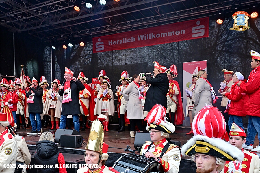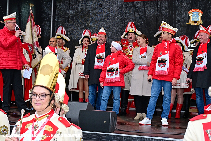 100 Auftakt HDK, Proklamation, Auftaktsitzung - Samstag, 15. November, zogen wir mit den Duisburger Karnevalsgesellschaften vom Forum über die Königsstraße zum Burgplatz. Hier war dann die Auftaktveranstaltung des HDK. Um die Mittagszeit sind es über den Rhein nach Kamp-Lintfort gefahren, dort war in der Stadthalle die Proklamation von der Jugendprinzessin Sophie I. Am frühen Abend dann in die Aula, unsere Aula, vom Reinhard-und-Max-Mannesmann-Gymnasium, zur Auftaktsitzung unseres „Heimathafens“. Mit „stürmischer“ Begeisterung wurden wir dort empfangen.