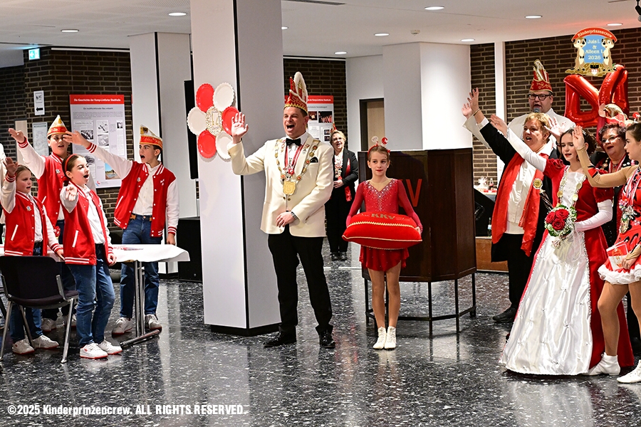 25 Auftakt HDK, Proklamation, Auftaktsitzung - Samstag, 15. November, zogen wir mit den Duisburger Karnevalsgesellschaften vom Forum über die Königsstraße zum Burgplatz. Hier war dann die Auftaktveranstaltung des HDK. Um die Mittagszeit sind es über den Rhein nach Kamp-Lintfort gefahren, dort war in der Stadthalle die Proklamation von der Jugendprinzessin Sophie I. Am frühen Abend dann in die Aula, unsere Aula, vom Reinhard-und-Max-Mannesmann-Gymnasium, zur Auftaktsitzung unseres „Heimathafens“. Mit „stürmischer“ Begeisterung wurden wir dort empfangen.