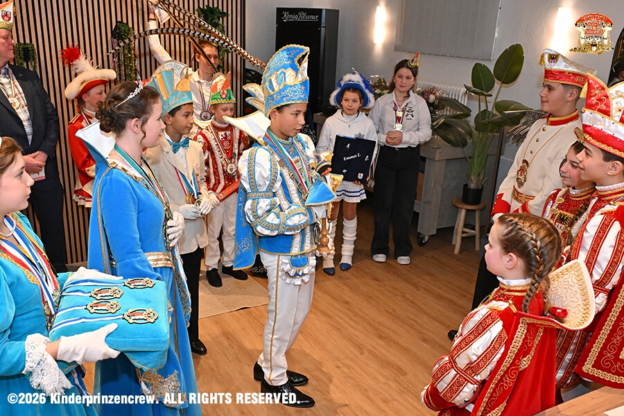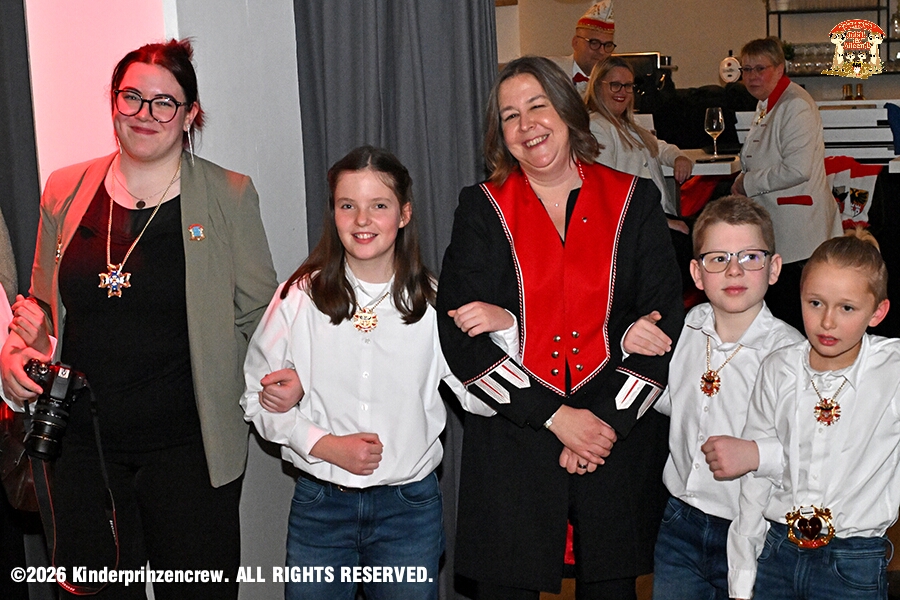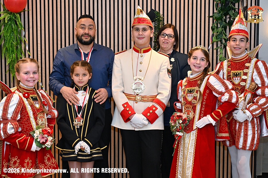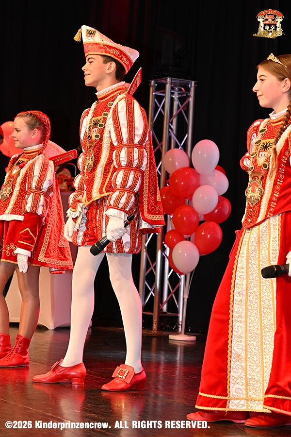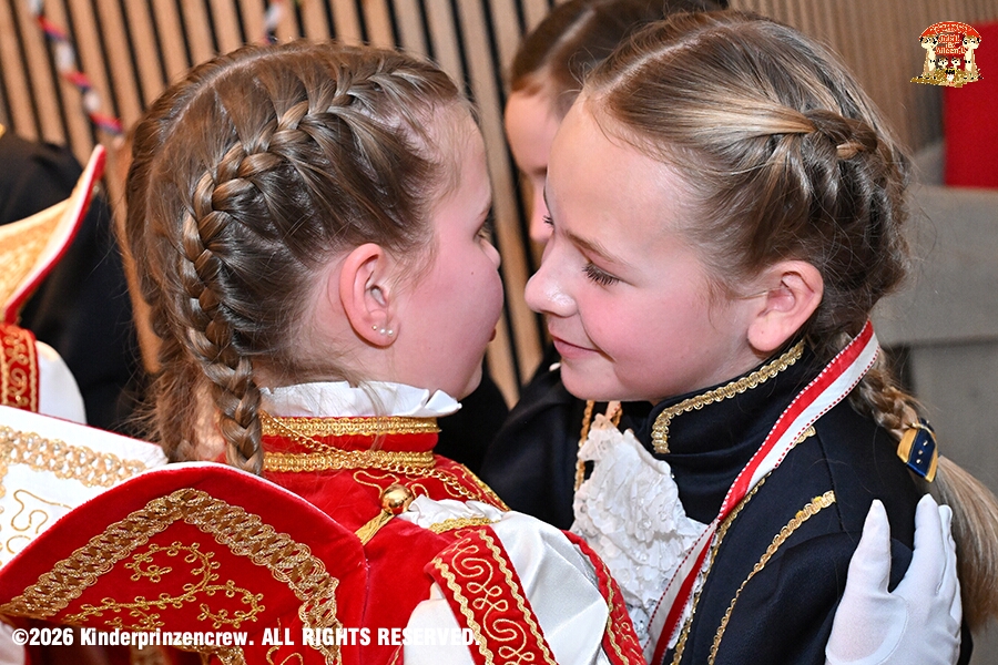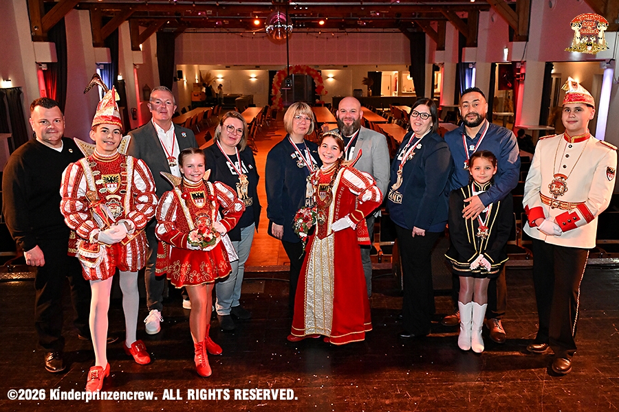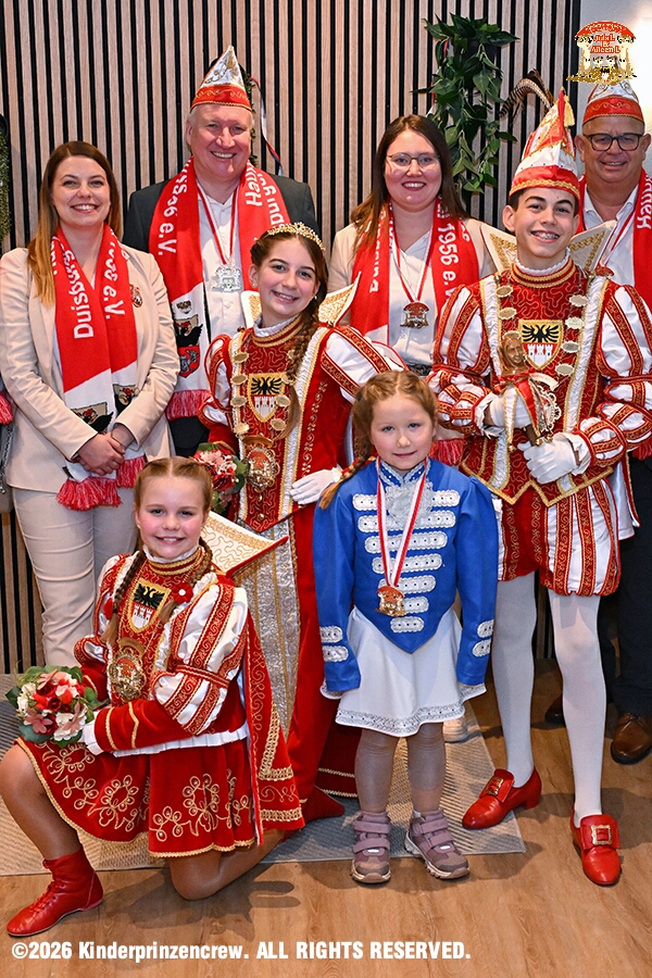 122 Unsere Kürung - Premiere - Im so genannten „Gürzenich“ von Duisburg, dem Steinhof in Huckingen fand am Sonntag, 4. Januar 2026, zum ersten Mal die Kürung einer Kinderprinzencrew statt. Wir sind nun als Prinz Juls I., Prinzessin Aileen I. mit Hofmarschall Sami und Pagin Paula der Stadt Duisburg 2026 inthronisiert.