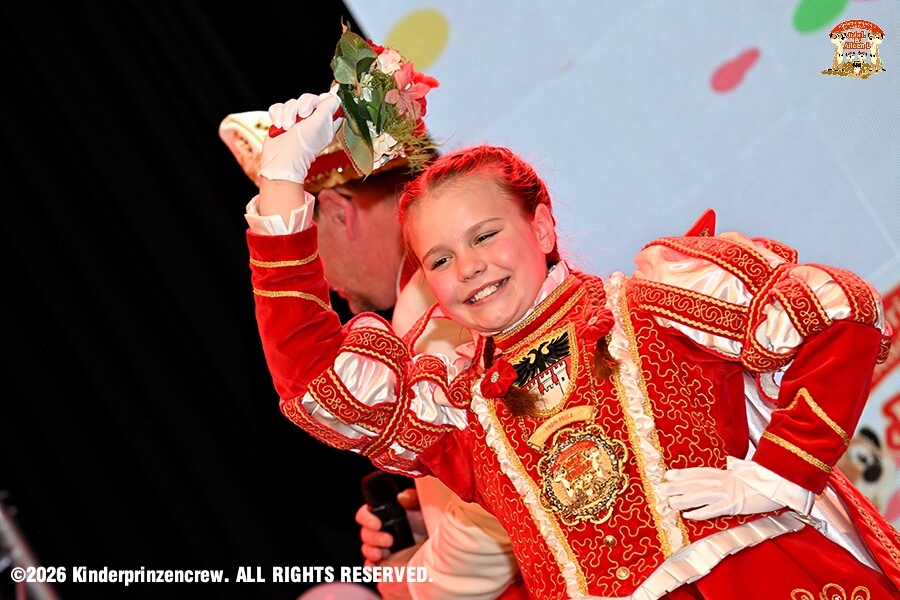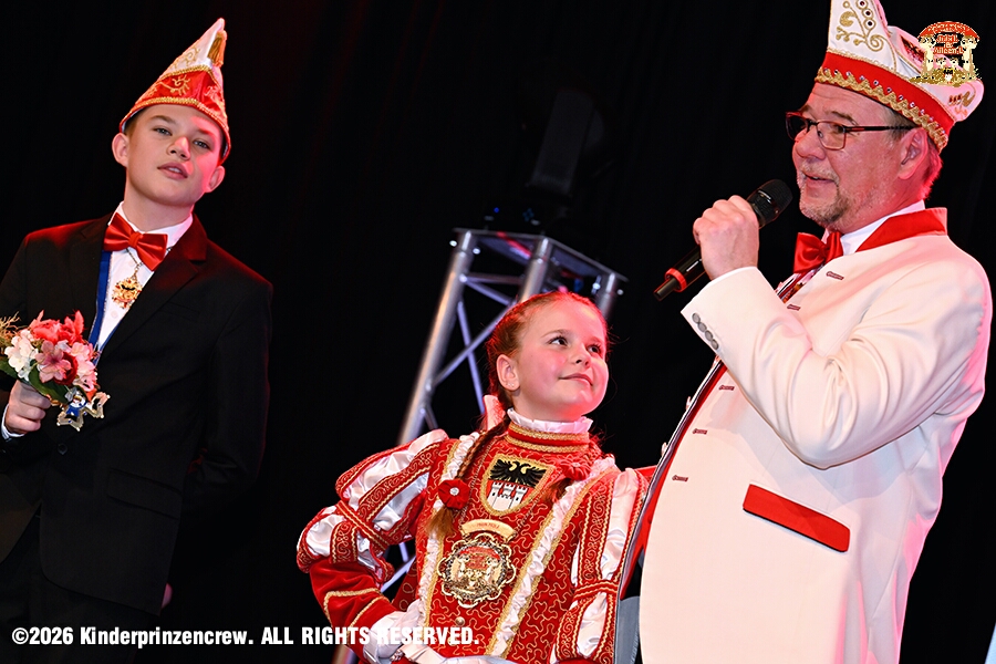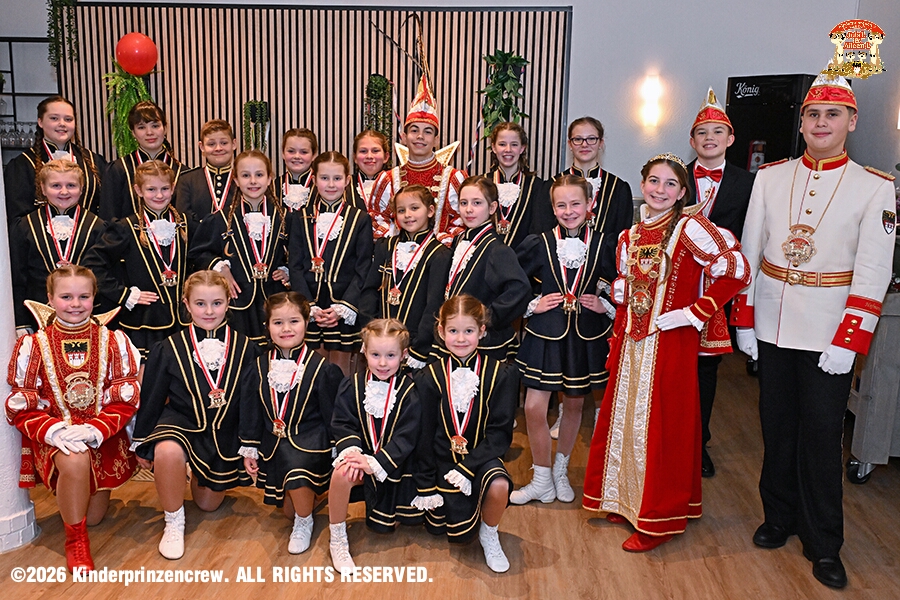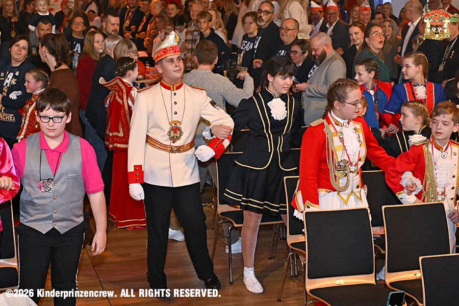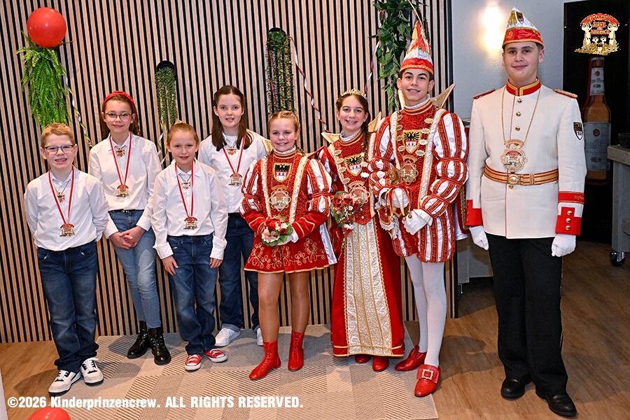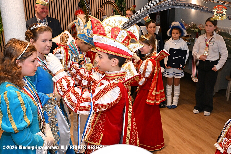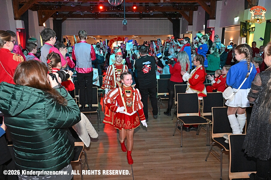 122 Unsere Kürung - Premiere - Im so genannten „Gürzenich“ von Duisburg, dem Steinhof in Huckingen fand am Sonntag, 4. Januar 2026, zum ersten Mal die Kürung einer Kinderprinzencrew statt. Wir sind nun als Prinz Juls I., Prinzessin Aileen I. mit Hofmarschall Sami und Pagin Paula der Stadt Duisburg 2026 inthronisiert.