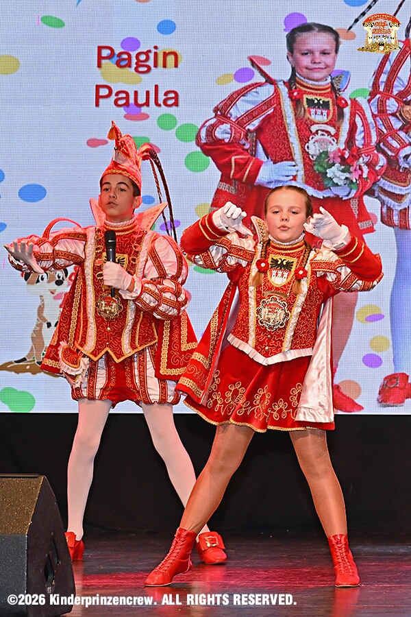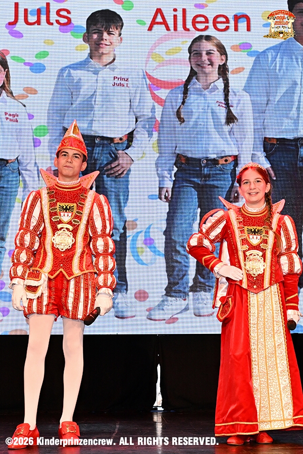 20 Unsere Kürung - Premiere - Im so genannten „Gürzenich“ von Duisburg, dem Steinhof in Huckingen fand am Sonntag, 4. Januar 2026, zum ersten Mal die Kürung einer Kinderprinzencrew statt. Wir sind nun als Prinz Juls I., Prinzessin Aileen I. mit Hofmarschall Sami und Pagin Paula der Stadt Duisburg 2026 inthronisiert.