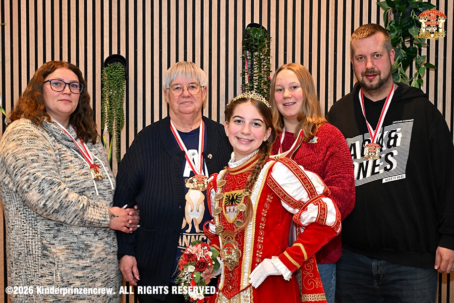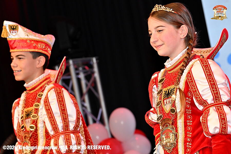 40 Unsere Kürung - Premiere - Im so genannten „Gürzenich“ von Duisburg, dem Steinhof in Huckingen fand am Sonntag, 4. Januar 2026, zum ersten Mal die Kürung einer Kinderprinzencrew statt. Wir sind nun als Prinz Juls I., Prinzessin Aileen I. mit Hofmarschall Sami und Pagin Paula der Stadt Duisburg 2026 inthronisiert.