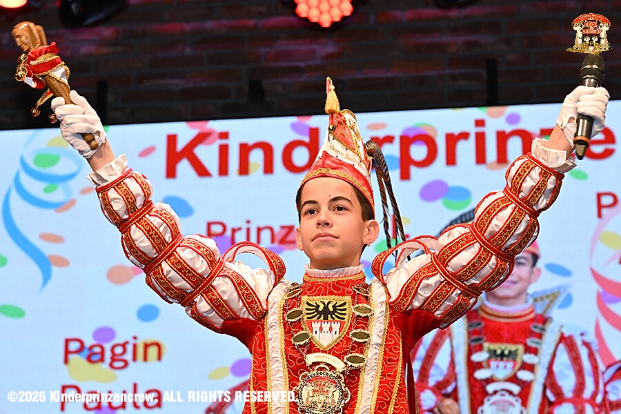 110 Unsere Kürung - Premiere - Im so genannten „Gürzenich“ von Duisburg, dem Steinhof in Huckingen fand am Sonntag, 4. Januar 2026, zum ersten Mal die Kürung einer Kinderprinzencrew statt. Wir sind nun als Prinz Juls I., Prinzessin Aileen I. mit Hofmarschall Sami und Pagin Paula der Stadt Duisburg 2026 inthronisiert.