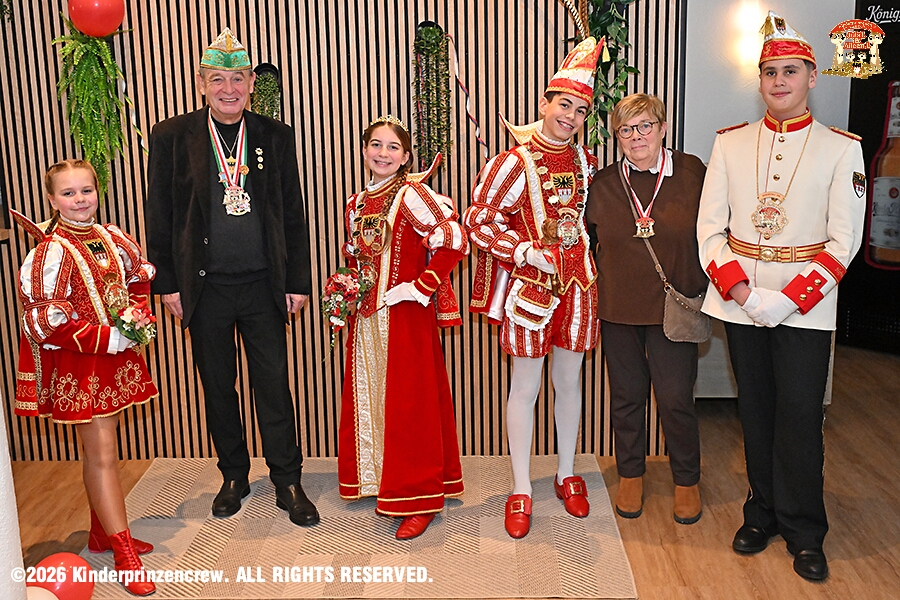 81 Unsere Kürung - Premiere - Im so genannten „Gürzenich“ von Duisburg, dem Steinhof in Huckingen fand am Sonntag, 4. Januar 2026, zum ersten Mal die Kürung einer Kinderprinzencrew statt. Wir sind nun als Prinz Juls I., Prinzessin Aileen I. mit Hofmarschall Sami und Pagin Paula der Stadt Duisburg 2026 inthronisiert.