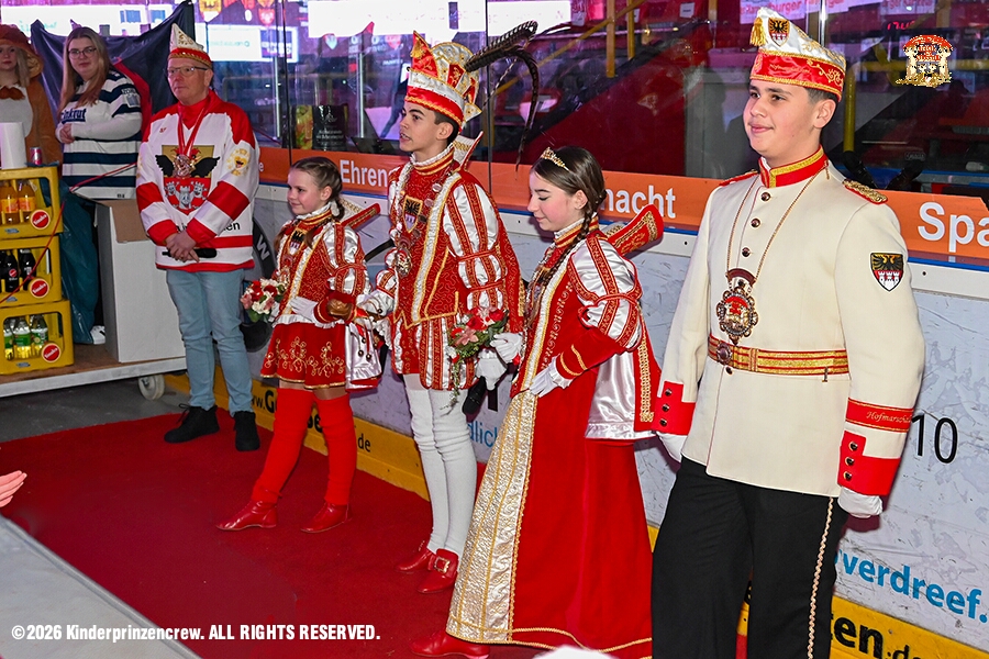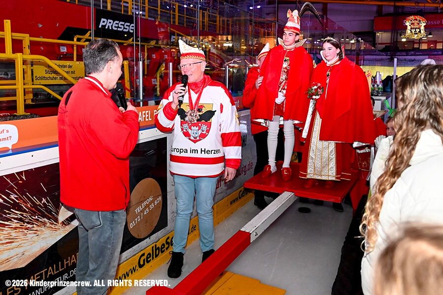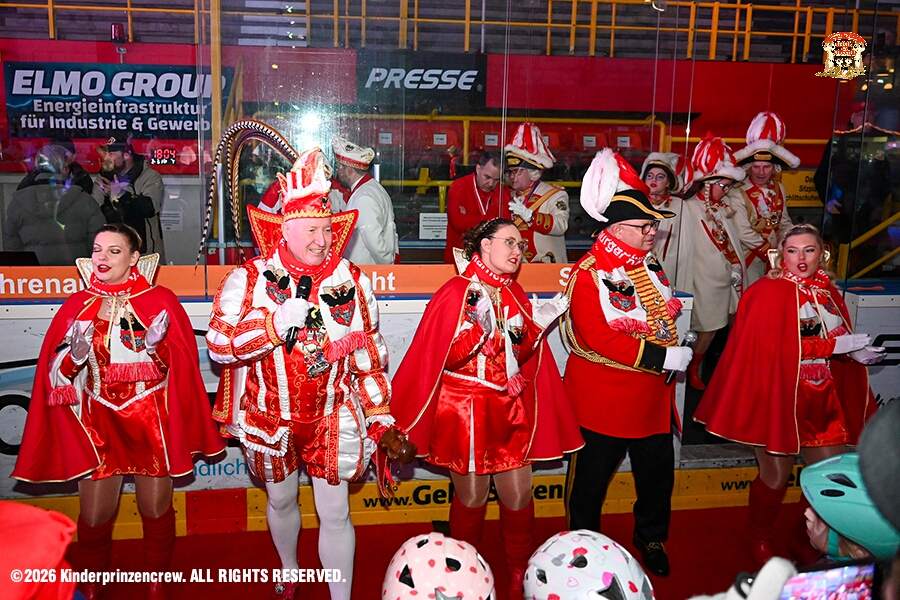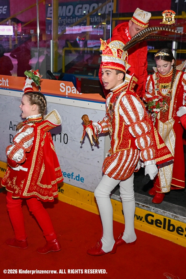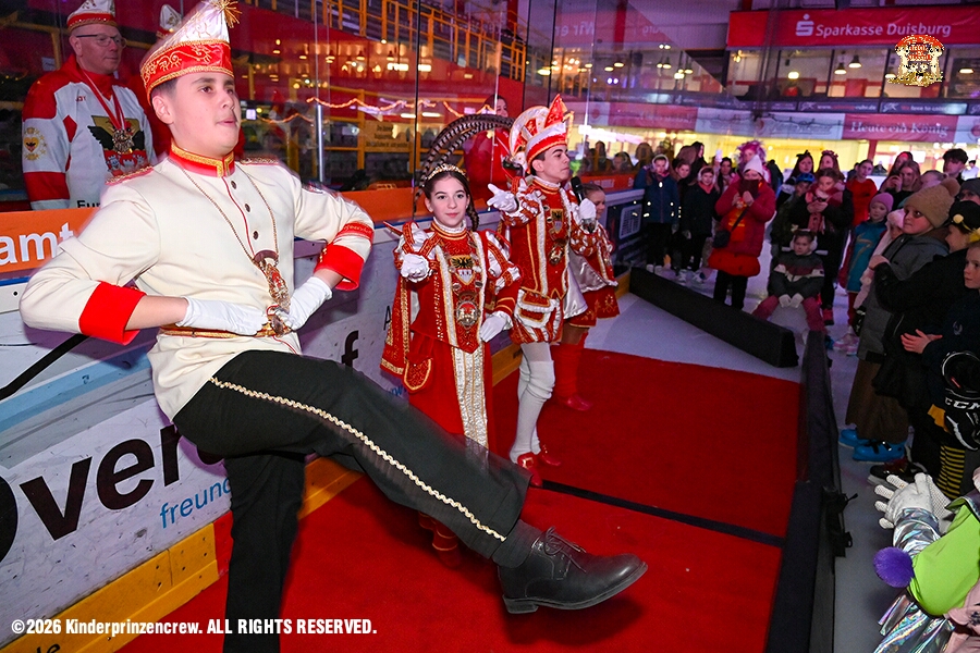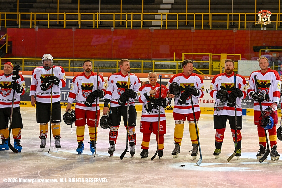 Am späten Freitagnachmittag hieß es zum 4. Mal „Karneval on Ice“ . Nach der Premiere 2023 ist diese Veranstaltung weiterhin beliebt. Das (Spaß)Eishockeyspiel der Teams Karneval vs. Stadt Duisburg endete 10:10. Nach diesem Besuch waren noch bei der Ehrengarde, diese hat den „Großen Orden“ an Joachim Loosen verliehen.