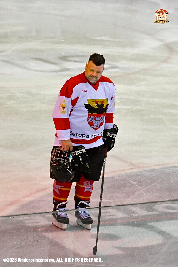 26 alleato Arena und Ordensessen - Am späten Freitagnachmittag hieß es zum 4. Mal „Karneval on Ice“ . Nach der Premiere 2023 ist diese Veranstaltung weiterhin beliebt. Das (Spaß)Eishockeyspiel der Teams Karneval vs. Stadt Duisburg endete 10:10. Nach diesem Besuch waren noch bei der Ehrengarde, diese hat den „Großen Orden“ an Joachim Loosen verliehen.