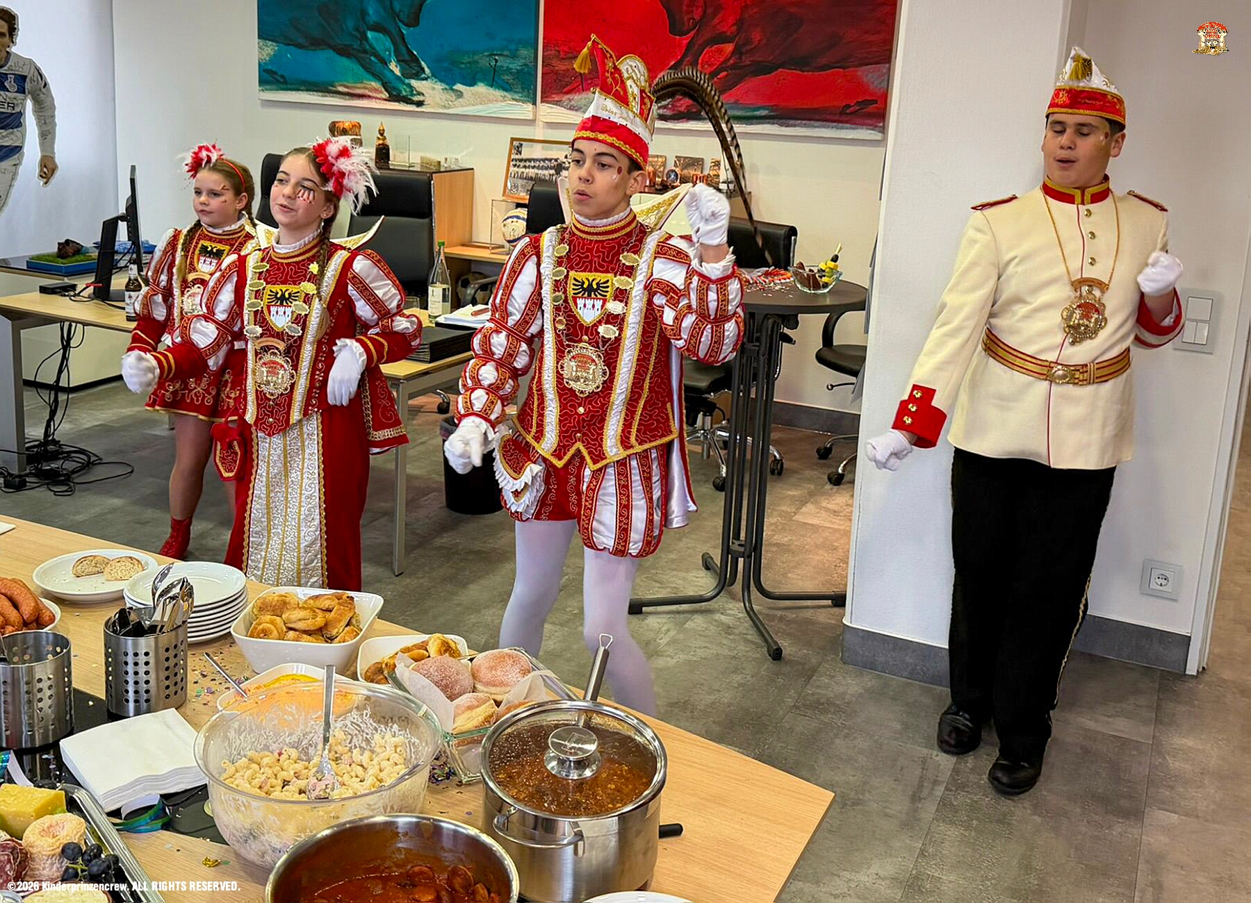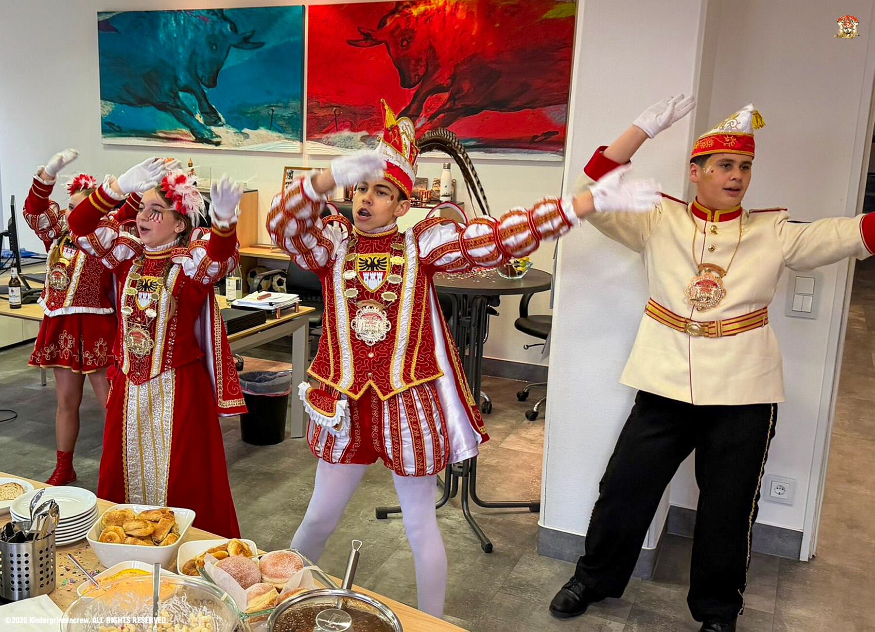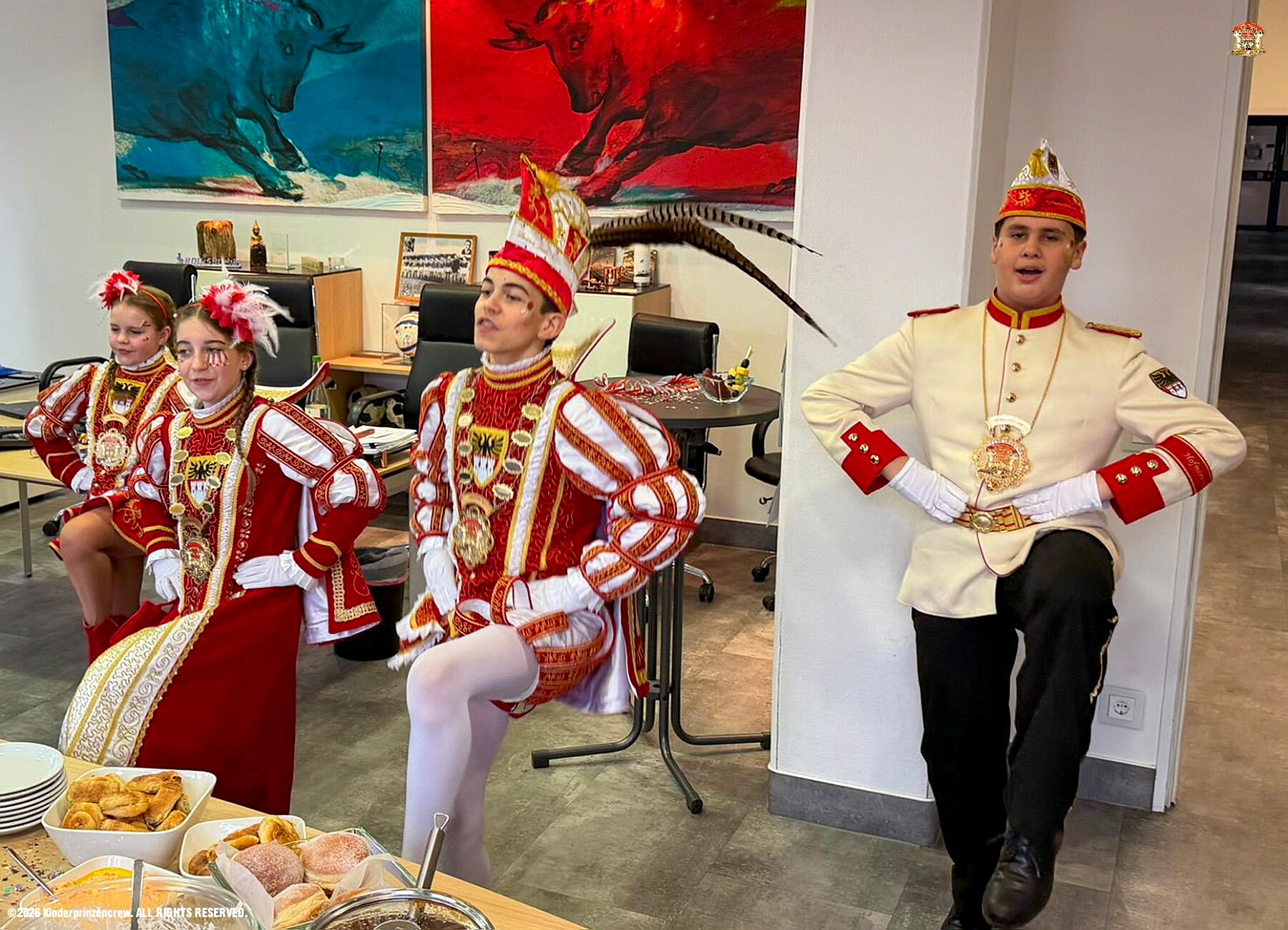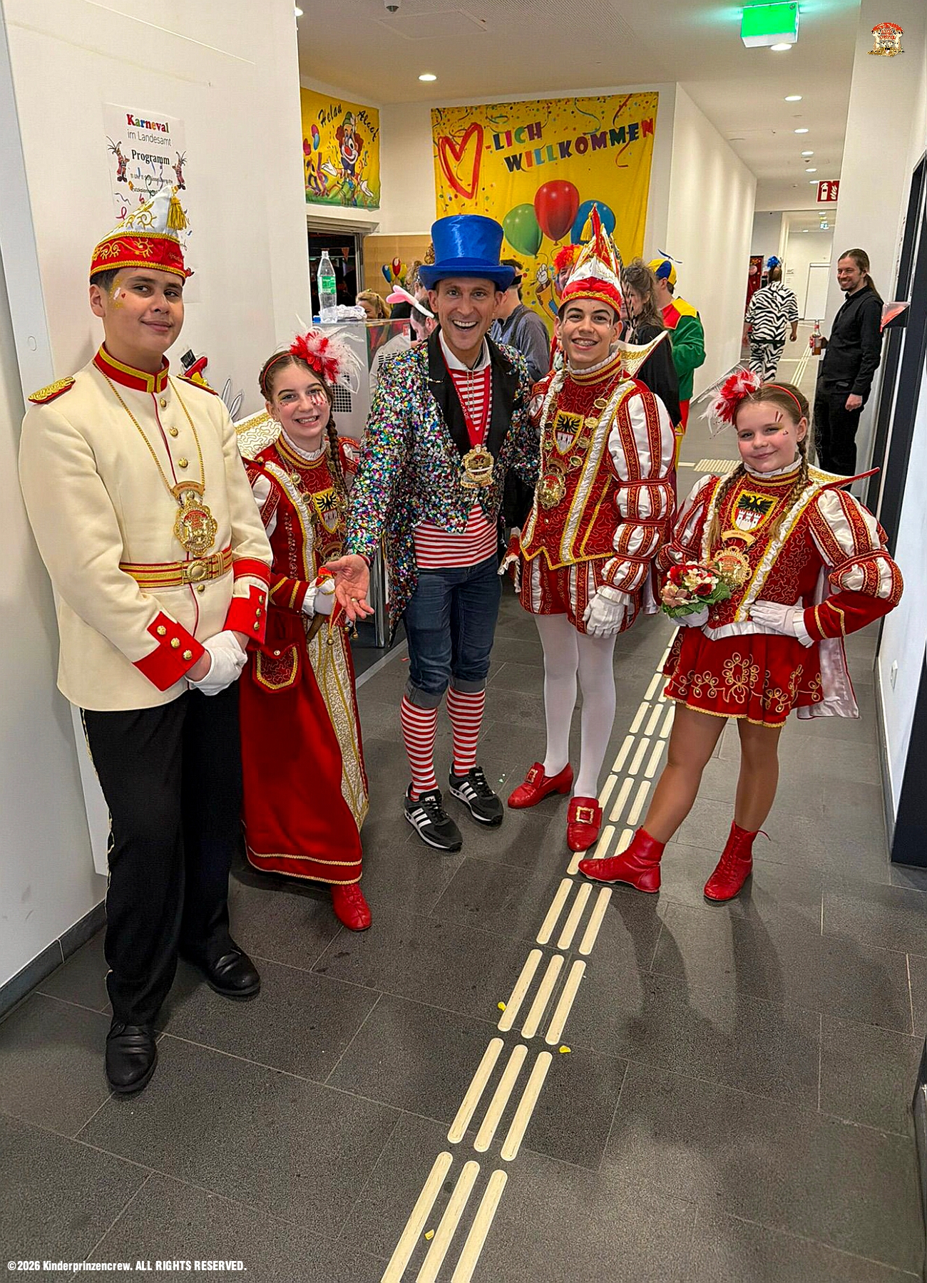 26 Weiberfastnachts Tour, 11. Februar - Schon um 9 Uhr begann dieser ereignisreicher Tag für uns mit der Karnevalsfeier in der GGS Habichtstraße. Im HDK Festzelt wurden wir danach fanatisch gefeiert. Weiter ging es dann zu Hargreaves und ins LANUV zur der Firmenfeiern. Zwischendurch seine Seniorenfeier der AWO Karl-Jarres-Straße. Im Ratskeller feiern die Nordvereine Altweiber. In Folge fahren wir nach Laar, einmal zum Familienkarneval der KG Rot-Gold und die KFD feier im St. Ewald. Der vorletzte Auftritt dann die Altweibersitzung bei der Ehrengarde bevor es zum erneuten Heimspiel zur Altweiber-Party in den Heimathafen geht.
