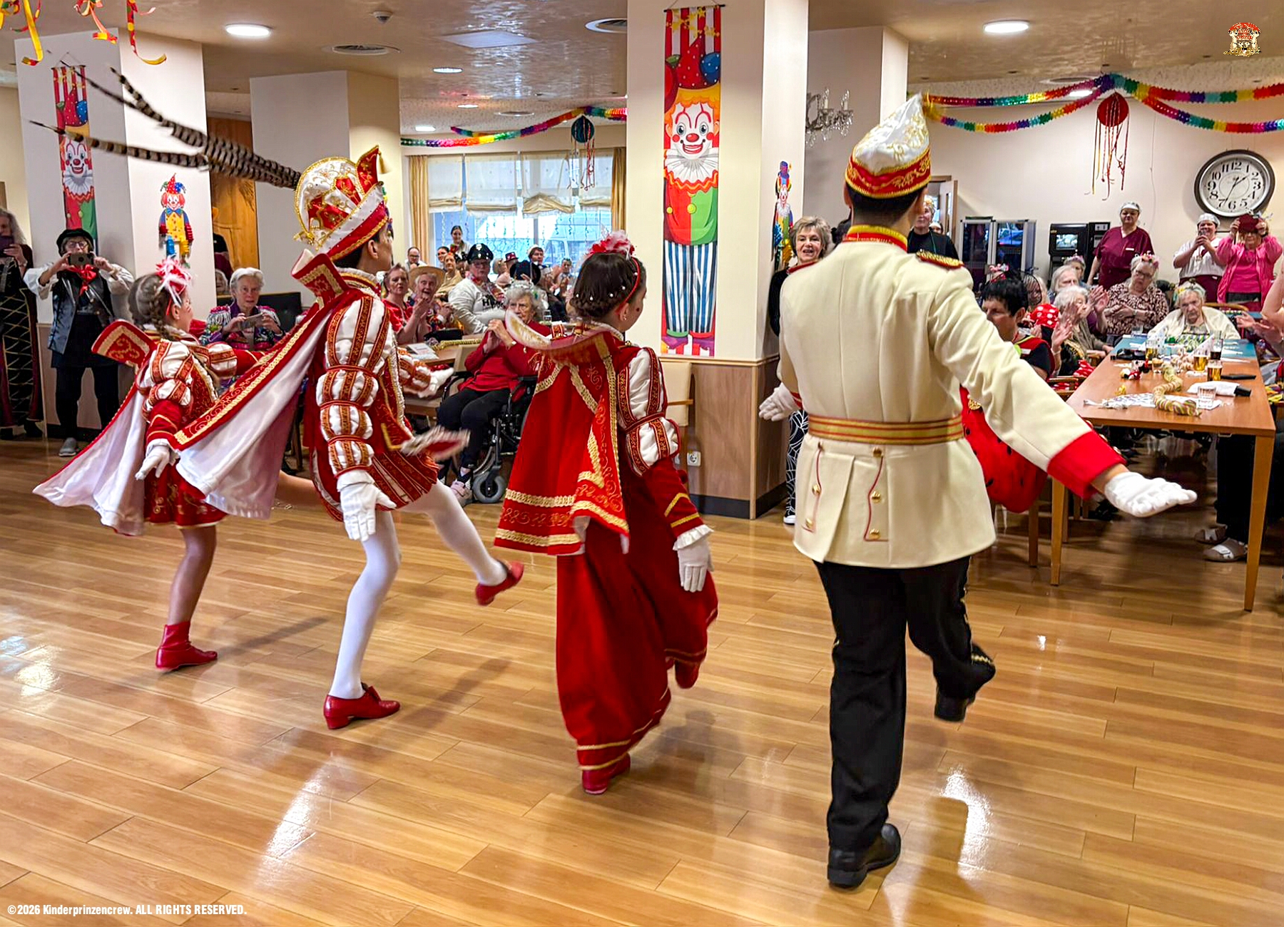 116 Weiberfastnachts Tour, 11. Februar - Schon um 9 Uhr begann dieser ereignisreicher Tag für uns mit der Karnevalsfeier in der GGS Habichtstraße. Im HDK Festzelt wurden wir danach fanatisch gefeiert. Weiter ging es dann zu Hargreaves und ins LANUV zur der Firmenfeiern. Zwischendurch seine Seniorenfeier der AWO Karl-Jarres-Straße. Im Ratskeller feiern die Nordvereine Altweiber. In Folge fahren wir nach Laar, einmal zum Familienkarneval der KG Rot-Gold und die KFD feier im St. Ewald. Der vorletzte Auftritt dann die Altweibersitzung bei der Ehrengarde bevor es zum erneuten Heimspiel zur Altweiber-Party in den Heimathafen geht.