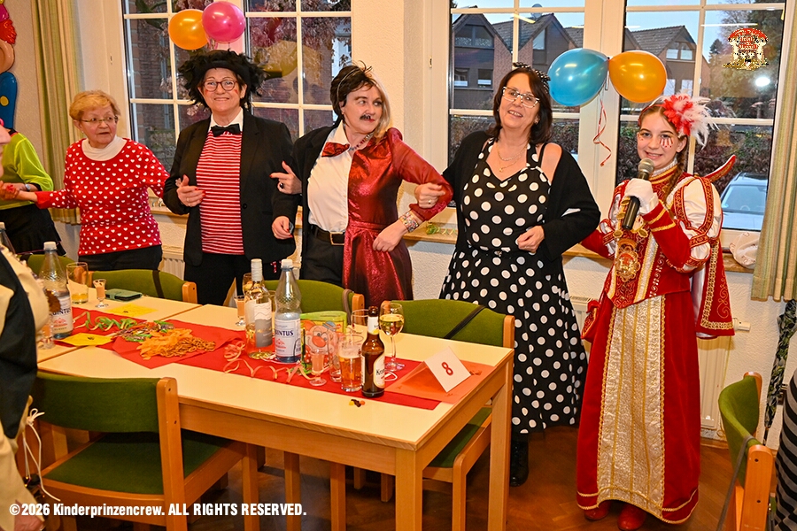 7 Weiberfastnachts Tour, 11. Februar - Schon um 9 Uhr begann dieser ereignisreicher Tag für uns mit der Karnevalsfeier in der GGS Habichtstraße. Im HDK Festzelt wurden wir danach fanatisch gefeiert. Weiter ging es dann zu Hargreaves und ins LANUV zur der Firmenfeiern. Zwischendurch seine Seniorenfeier der AWO Karl-Jarres-Straße. Im Ratskeller feiern die Nordvereine Altweiber. In Folge fahren wir nach Laar, einmal zum Familienkarneval der KG Rot-Gold und die KFD feier im St. Ewald. Der vorletzte Auftritt dann die Altweibersitzung bei der Ehrengarde bevor es zum erneuten Heimspiel zur Altweiber-Party in den Heimathafen geht.
