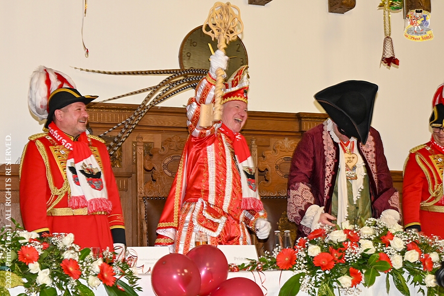23 Rosenmontag 2026 - Es war eigentlich ein toller Tag, wenn nur das Wetter mitgespielt hätte. Beim Wecken von Prinz Toni I. vor dem WYNDHAM Hotel Duisburger Hof war es schon recht ungemütlich. Danach dann ein paar warme Stunden in unserem Rat, beim Prinzenwecken mit OB Sören Link. Pünktlich zum Start des Rosenmontagszugs geht es los mit dem Regen, bis auf kurze Momente hielt er an bis zum Ende des Zuges. Nachdem sich Alle im König Pilsener Festzelt auf gewärmt hatten, kamen auf der Bühne die Verabschiedung von uns, der Kinderprinzencrew 2026, und Prinz Toni I.