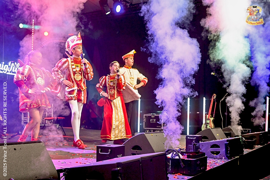 Es war eigentlich ein toller Tag, wenn nur das Wetter mitgespielt hätte. Beim Wecken von Prinz Toni I. vor dem WYNDHAM Hotel Duisburger Hof war es schon recht ungemütlich. Danach dann ein paar warme Stunden in unserem Rat, beim Prinzenwecken mit OB Sören Link. Pünktlich zum Start des Rosenmontagszugs geht es los mit dem Regen, bis auf kurze Momente hielt er an bis zum Ende des Zuges. Nachdem sich Alle im König Pilsener Festzelt auf gewärmt hatten, kamen auf der Bühne die Verabschiedung von uns, der Kinderprinzencrew 2026, und Prinz Toni I.