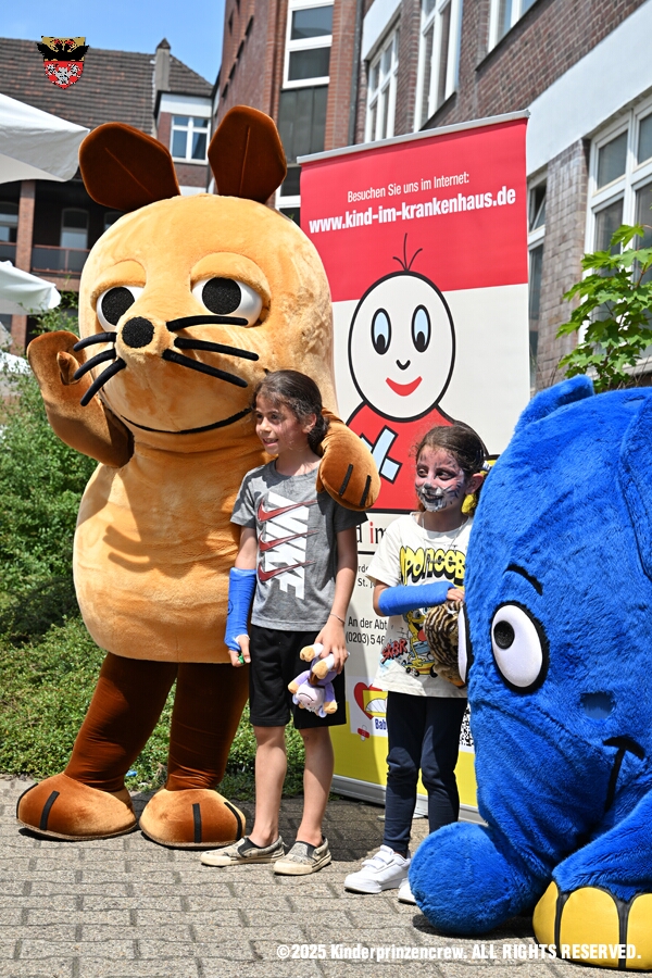 5 Kinderfest & Sommerfest - Unser erstes Ziel war in Hamborn das Helios St. Johannes Klinikum. Ein großes Kinderfest veranstaltete der Förderverein KiK – Kind im Krankenhaus - anlässlich seines 30jährigen Bestehens im Klinikgarten. Der zweite Termin war dann in Bissingheim auf der Sportanlage des ETUS Bissingheim. Wie schon im letzten Jahr fand dort das Sommerfest der KG Schottenzunft Duisburg statt. Zum letzten Termin, Sommerfest der Grafschafter Funken in Moers, wurde es ein wenig feucht von Oben. Aber kein Problem, wir standen unter „Schirmherrschaft“ von Katrin und Jörg.