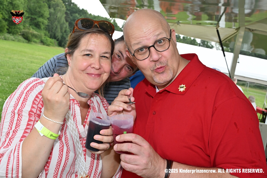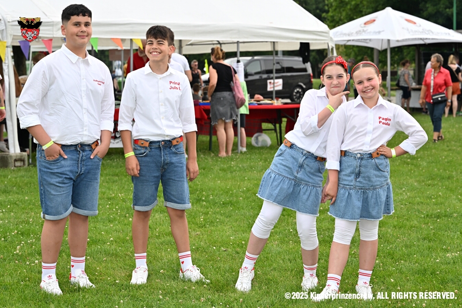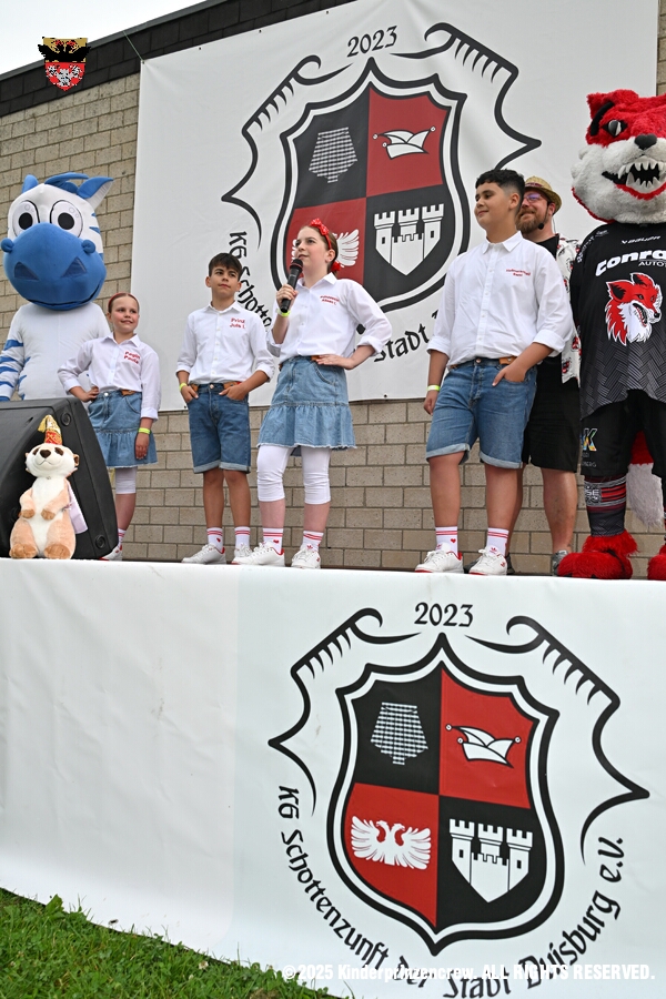 24 Kinderfest & Sommerfest - Unser erstes Ziel war in Hamborn das Helios St. Johannes Klinikum. Ein großes Kinderfest veranstaltete der Förderverein KiK – Kind im Krankenhaus - anlässlich seines 30jährigen Bestehens im Klinikgarten. Der zweite Termin war dann in Bissingheim auf der Sportanlage des ETUS Bissingheim. Wie schon im letzten Jahr fand dort das Sommerfest der KG Schottenzunft Duisburg statt. Zum letzten Termin, Sommerfest der Grafschafter Funken in Moers, wurde es ein wenig feucht von Oben. Aber kein Problem, wir standen unter „Schirmherrschaft“ von Katrin und Jörg.