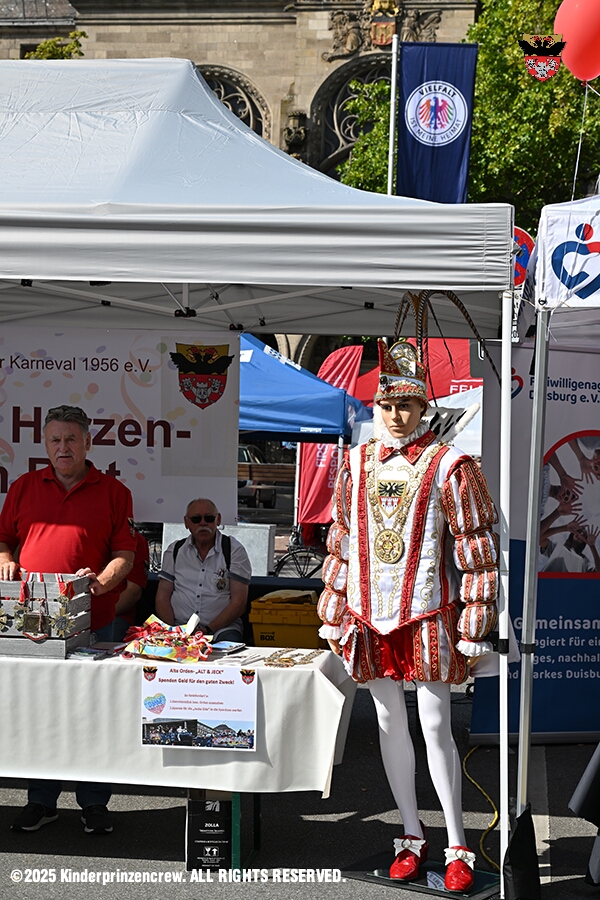 25 Der 6. September - Zwei Termine hatten wir an diesem sommerlichen Samstag. Der Erste war auf dem Burgplatz. Vor dem Rathaus fand der „Tag der Demokratie“ statt. Eine Veranstaltung der Stadt Duisburg, dem HDK unter Mitwirkung angeschlossener Vereinen und diversen Organisationen aus der Stadt. Danach ging es zur Platzanlage des TUS Viktoria 06 in Buchholz zum Benefiz-Spiel gegen die Traditionsmannschaft von Schalke 04.