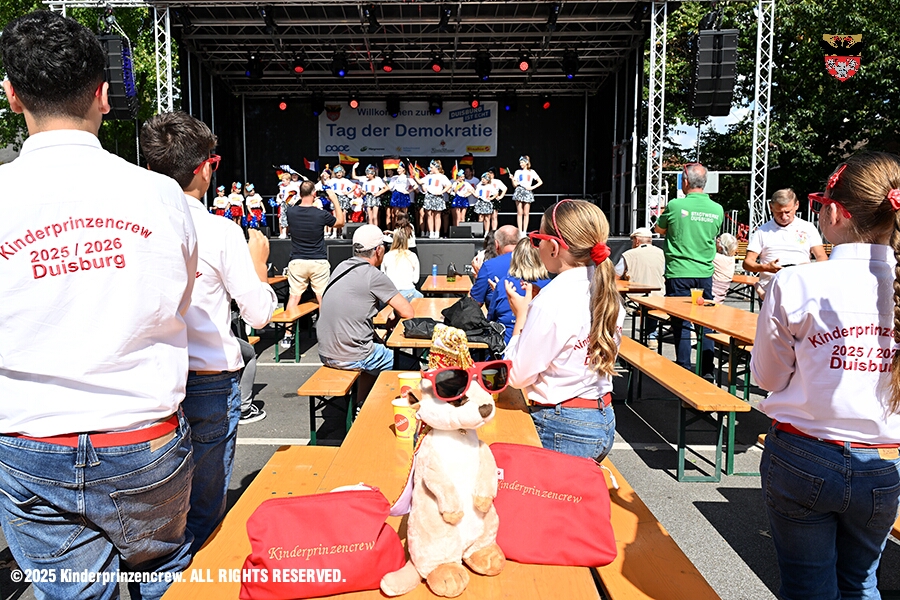 Zwei Termine hatten wir an diesem sommerlichen Samstag. Der Erste war auf dem Burgplatz. Vor dem Rathaus fand der „Tag der Demokratie“ statt. Eine Veranstaltung der Stadt Duisburg, dem HDK unter Mitwirkung angeschlossener Vereinen und diversen Organisationen aus der Stadt. Danach ging es zur Platzanlage des TUS Viktoria 06 in Buchholz zum Benefiz-Spiel gegen die Traditionsmannschaft von Schalke 04.