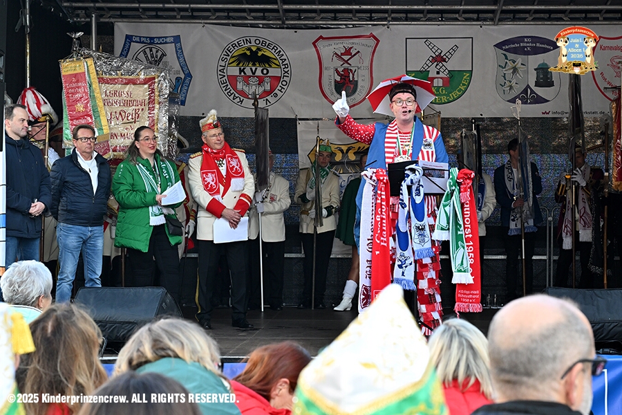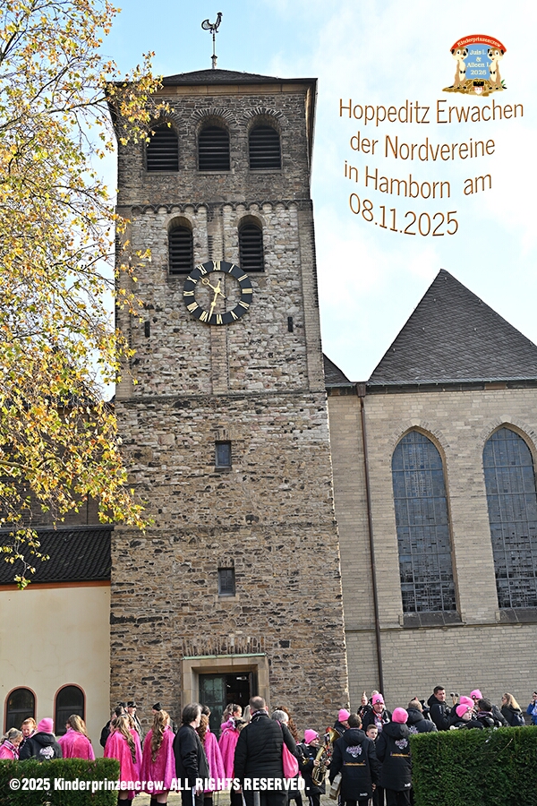 03 Hopped SonnigSued 2025-11-07 06  Langer Samstag, der 8. November  - Am Samstagmorgen stand in der Abteikirche der karnevalistische Gottesdienst in Hamborm an. Mit eine kleinen Umzug ging’ s zum dortigen Rathaus. Karnevalsauftakt der Nordvereine. Am frühen Abend dann in Laar zu Rot-Goldenen KG und später zur Party zum Hoppeditzerwachen bei der KG Sonniger Süden. : DVPJ, Holger II, Kinderprinz Phil II., Prinzessin, Mia I., Prinzessin Mia I., HDK, Duisburg, Karneval, Helau, Tollität, Event, Session 2024, Session 2025, Hauptausschuss, Gemeinschaft, Hauptausschuss Karneval Duisburg, Duisburg ist echt
