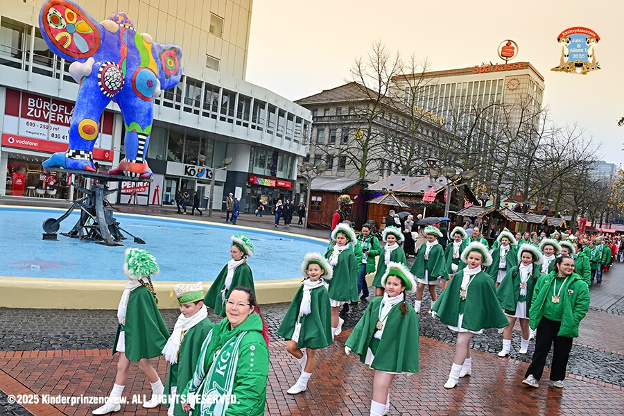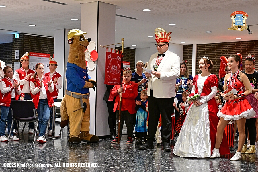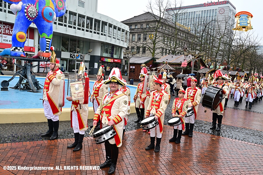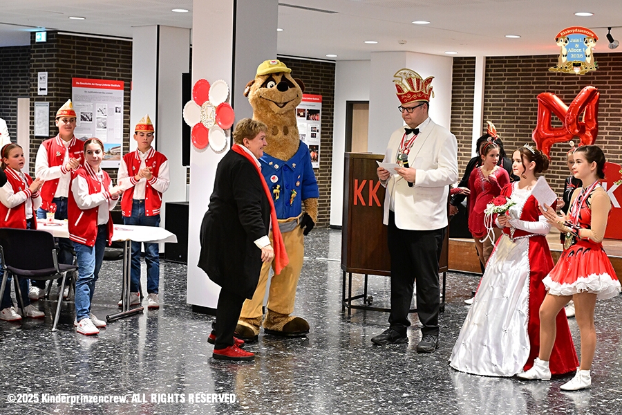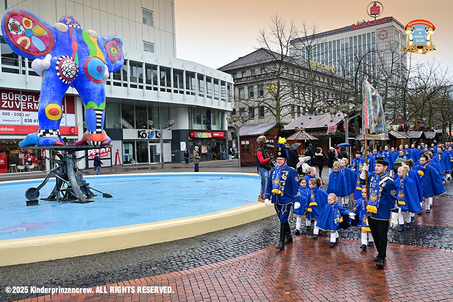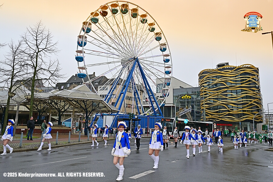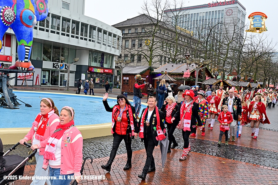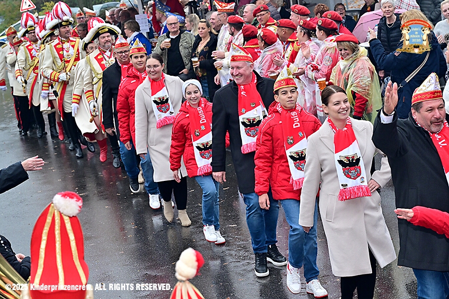 105 Auftakt HDK, Proklamation, Auftaktsitzung - Samstag, 15. November, zogen wir mit den Duisburger Karnevalsgesellschaften vom Forum über die Königsstraße zum Burgplatz. Hier war dann die Auftaktveranstaltung des HDK. Um die Mittagszeit sind es über den Rhein nach Kamp-Lintfort gefahren, dort war in der Stadthalle die Proklamation von der Jugendprinzessin Sophie I. Am frühen Abend dann in die Aula, unsere Aula, vom Reinhard-und-Max-Mannesmann-Gymnasium, zur Auftaktsitzung unseres „Heimathafens“. Mit „stürmischer“ Begeisterung wurden wir dort empfangen.