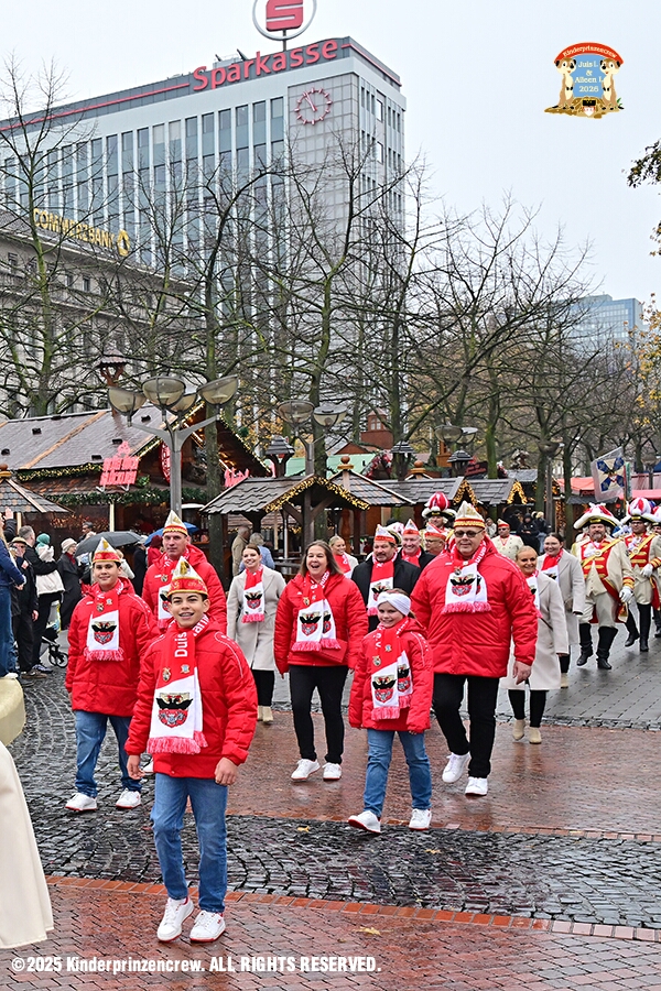 81 Auftakt HDK, Proklamation, Auftaktsitzung - Samstag, 15. November, zogen wir mit den Duisburger Karnevalsgesellschaften vom Forum über die Königsstraße zum Burgplatz. Hier war dann die Auftaktveranstaltung des HDK. Um die Mittagszeit sind es über den Rhein nach Kamp-Lintfort gefahren, dort war in der Stadthalle die Proklamation von der Jugendprinzessin Sophie I. Am frühen Abend dann in die Aula, unsere Aula, vom Reinhard-und-Max-Mannesmann-Gymnasium, zur Auftaktsitzung unseres „Heimathafens“. Mit „stürmischer“ Begeisterung wurden wir dort empfangen.