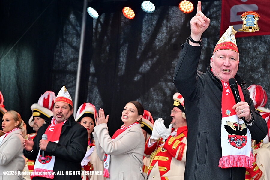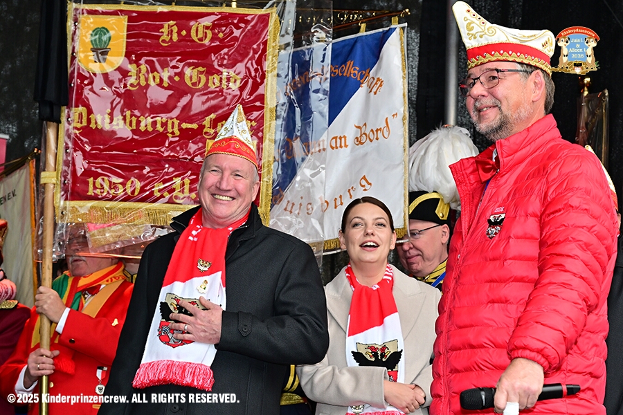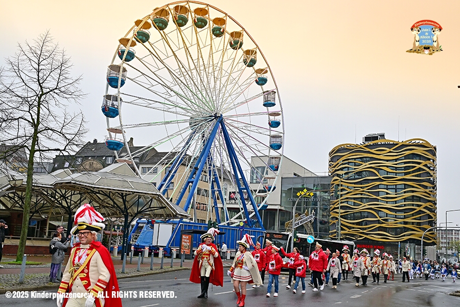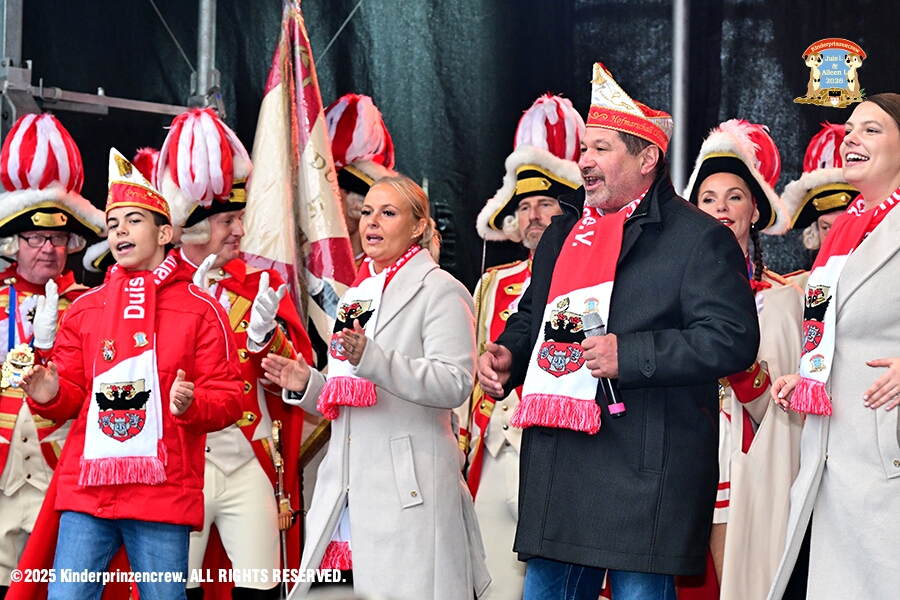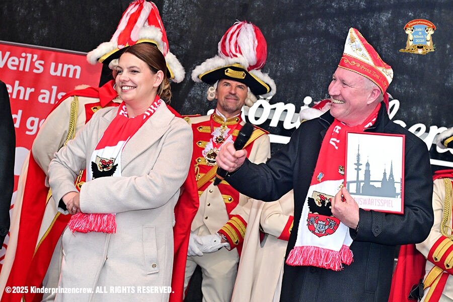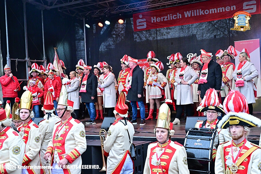 100 Auftakt HDK, Proklamation, Auftaktsitzung - Samstag, 15. November, zogen wir mit den Duisburger Karnevalsgesellschaften vom Forum über die Königsstraße zum Burgplatz. Hier war dann die Auftaktveranstaltung des HDK. Um die Mittagszeit sind es über den Rhein nach Kamp-Lintfort gefahren, dort war in der Stadthalle die Proklamation von der Jugendprinzessin Sophie I. Am frühen Abend dann in die Aula, unsere Aula, vom Reinhard-und-Max-Mannesmann-Gymnasium, zur Auftaktsitzung unseres „Heimathafens“. Mit „stürmischer“ Begeisterung wurden wir dort empfangen.