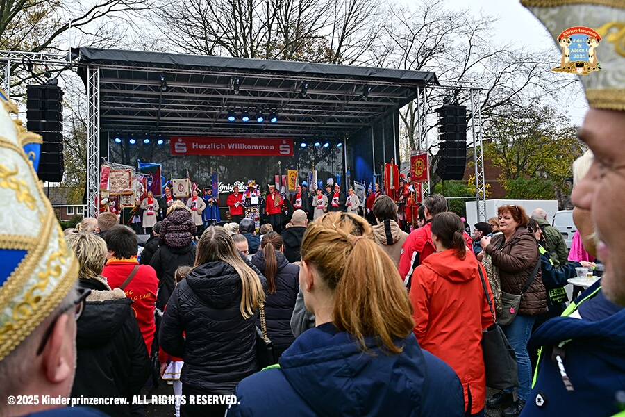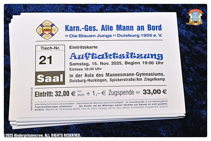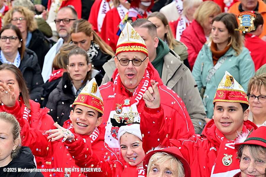 25 Auftakt HDK, Proklamation, Auftaktsitzung - Samstag, 15. November, zogen wir mit den Duisburger Karnevalsgesellschaften vom Forum über die Königsstraße zum Burgplatz. Hier war dann die Auftaktveranstaltung des HDK. Um die Mittagszeit sind es über den Rhein nach Kamp-Lintfort gefahren, dort war in der Stadthalle die Proklamation von der Jugendprinzessin Sophie I. Am frühen Abend dann in die Aula, unsere Aula, vom Reinhard-und-Max-Mannesmann-Gymnasium, zur Auftaktsitzung unseres „Heimathafens“. Mit „stürmischer“ Begeisterung wurden wir dort empfangen.
